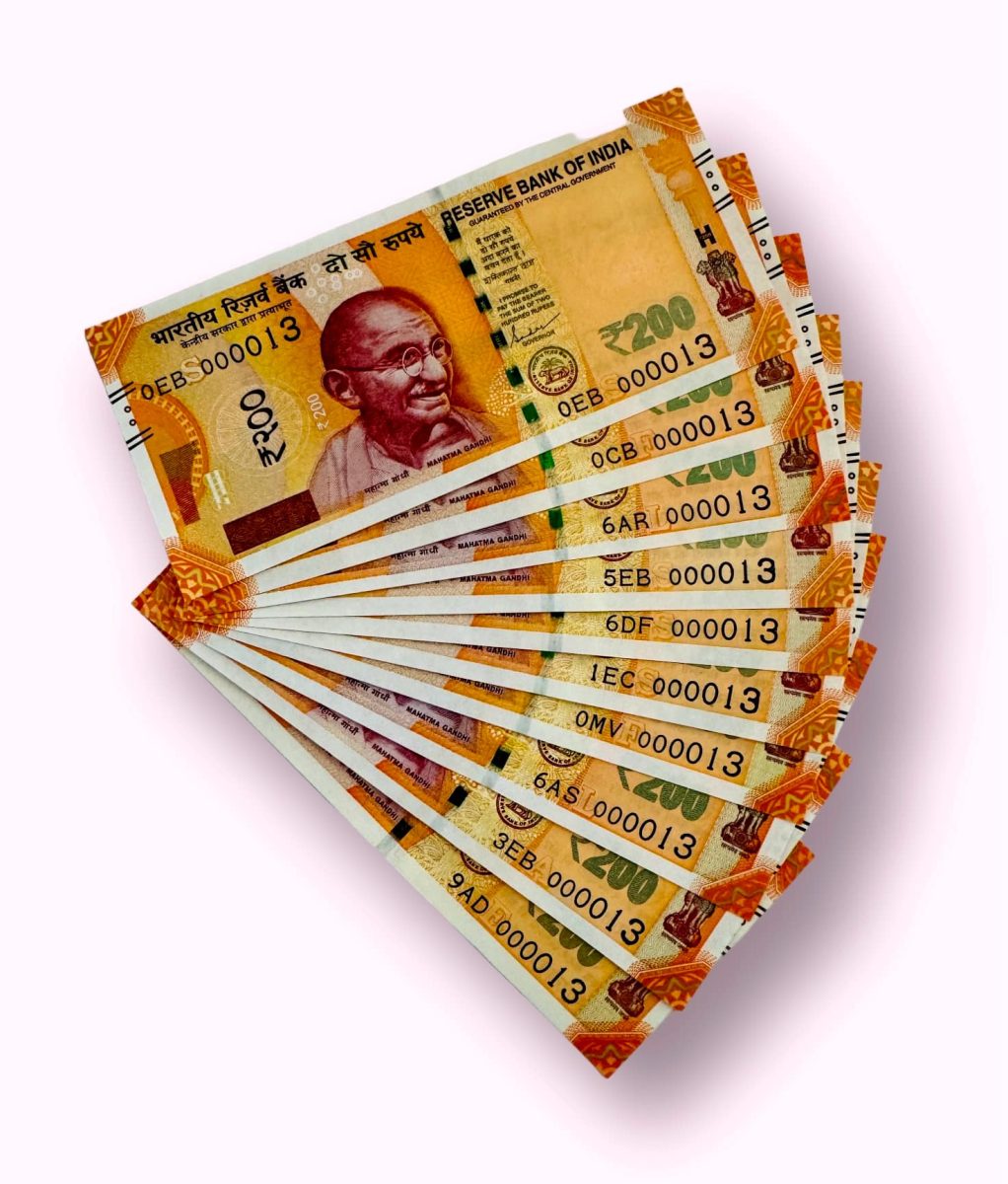 Rs 200 India Banknote 10 Note Same Number Set 000013 GEM UNC