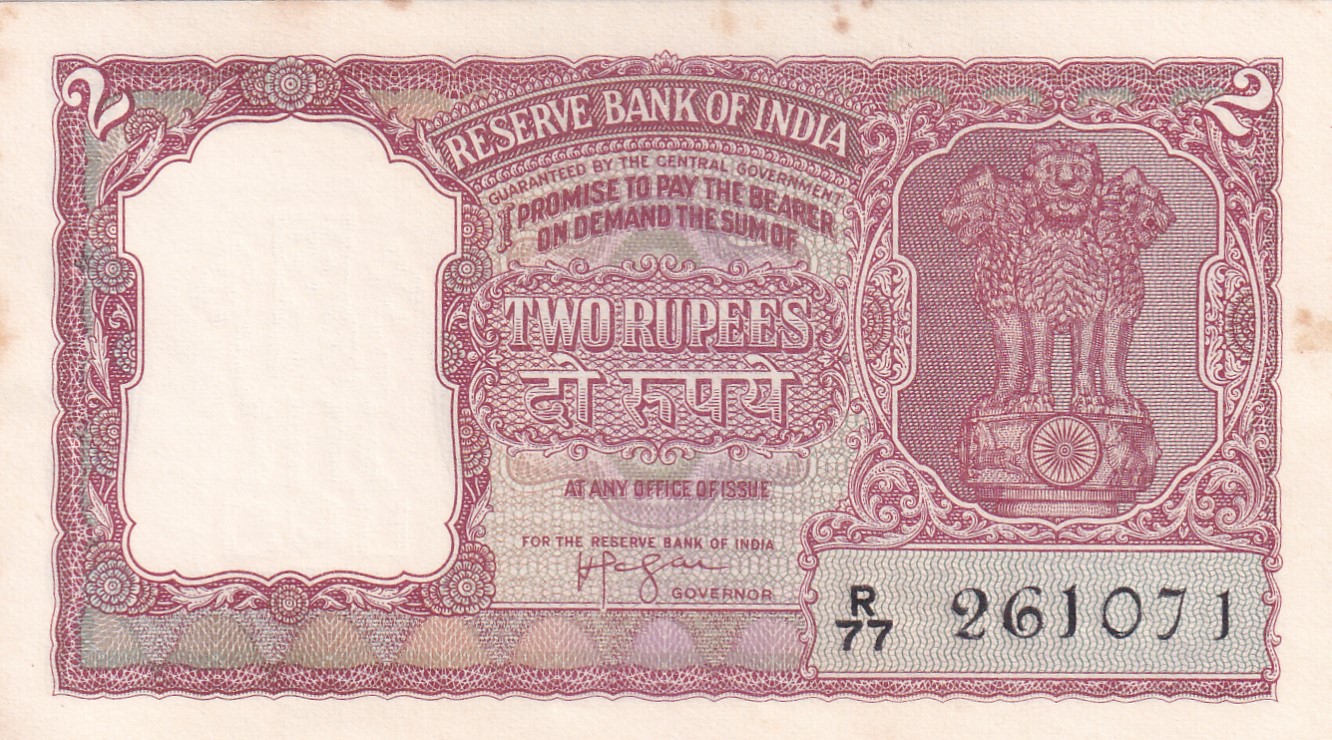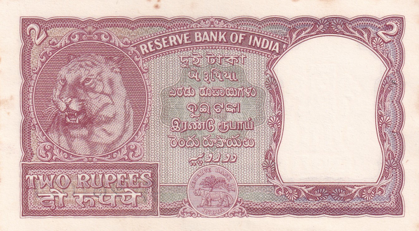 BIRTHDAY NUMBER 2 RUPEES HALF TIGER GOVERNOR IYENGER GEM UNC RARE NOTE