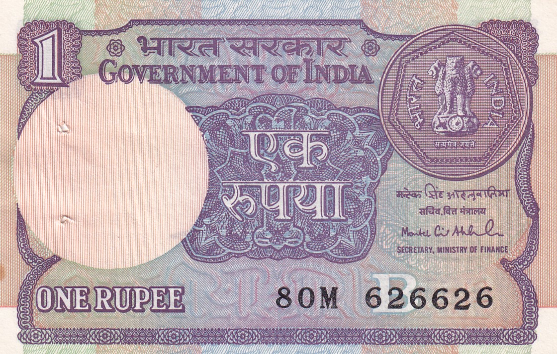 Doubling Number 626626 1 Rupees Old issue Montek Singh Ahluwalia GEM UNC Note