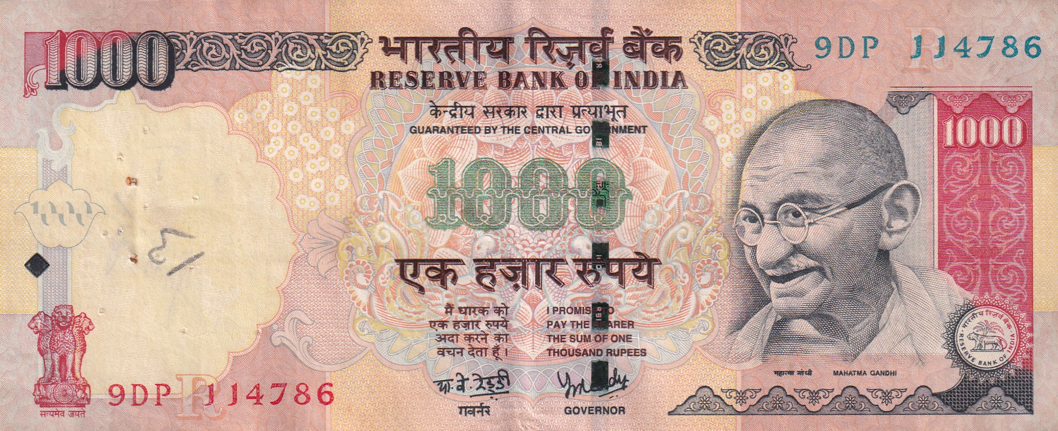 ENDING 786 FANCY NUMBER 1000 RUPEES GOVERNOR Y.B REDDY RARE NOTE