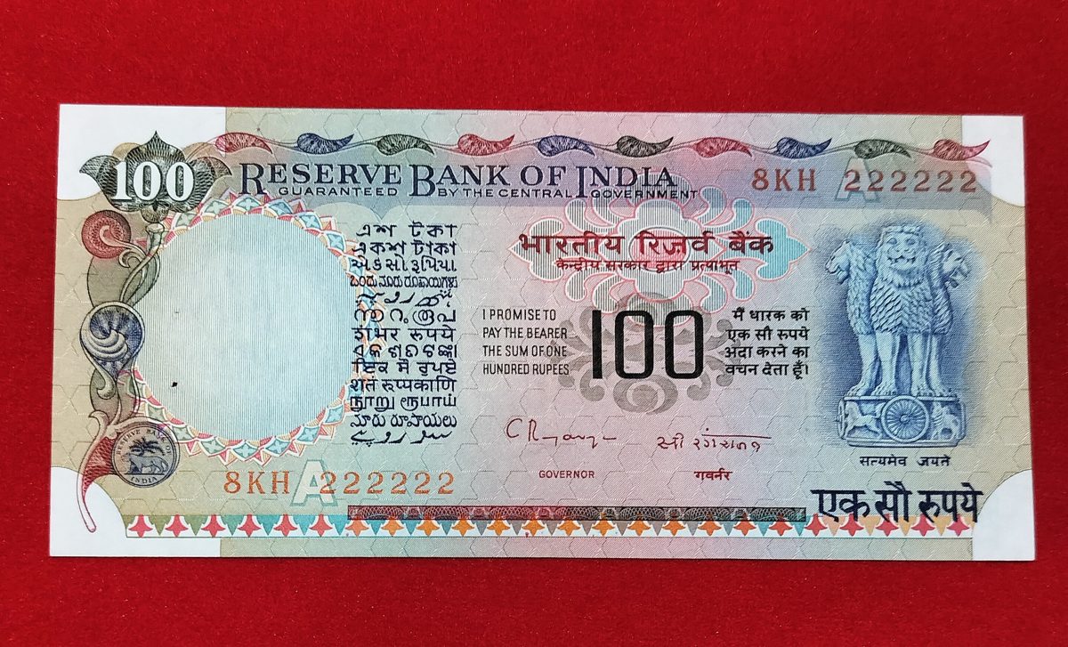 - EXTREMELY RARE 100 RUPEE NOTE FANCY NO. 222222