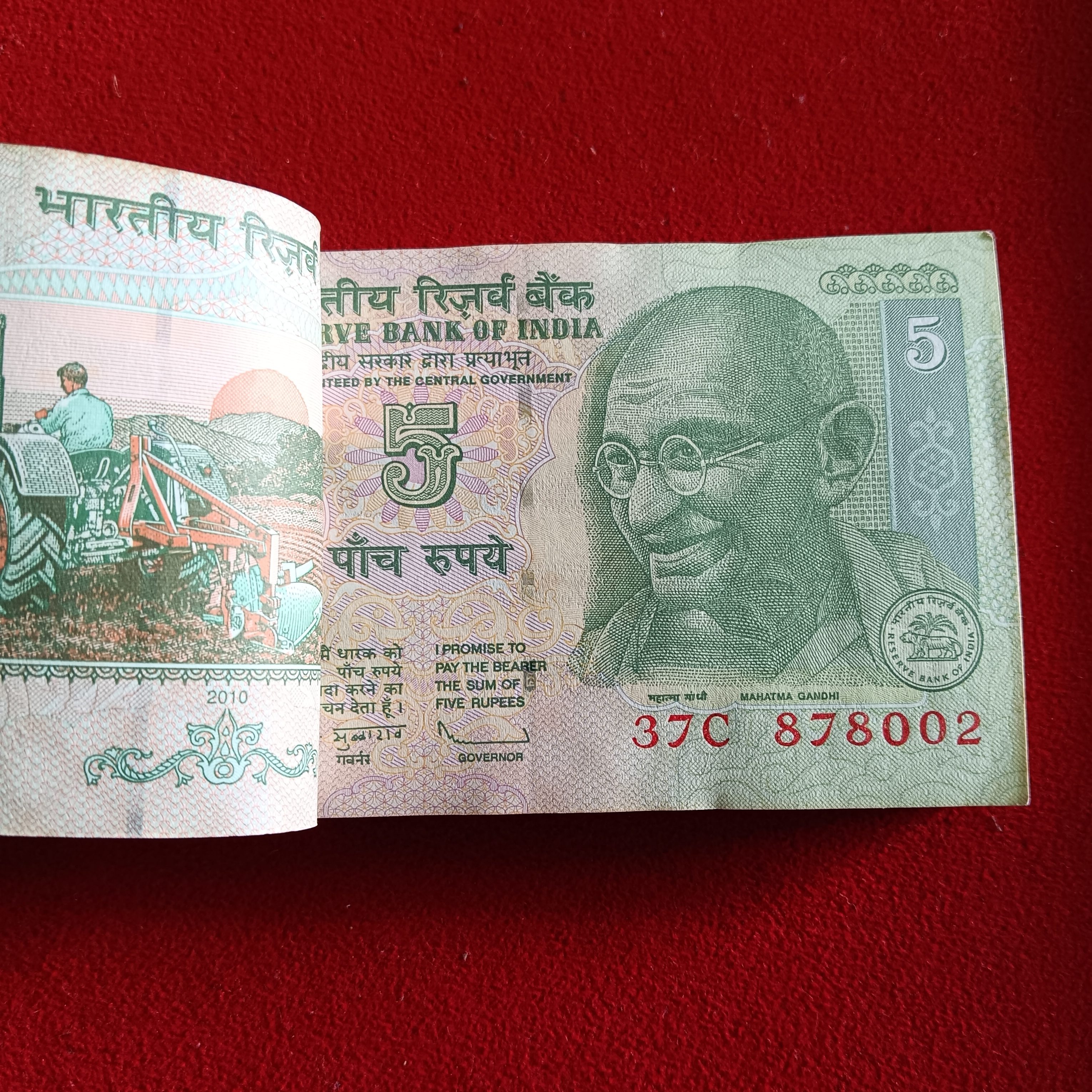 - Five Rs Mahatma Gandhi Bundle Governor D Subbarao Year 2010 Fancy Number Full Bundle 878001