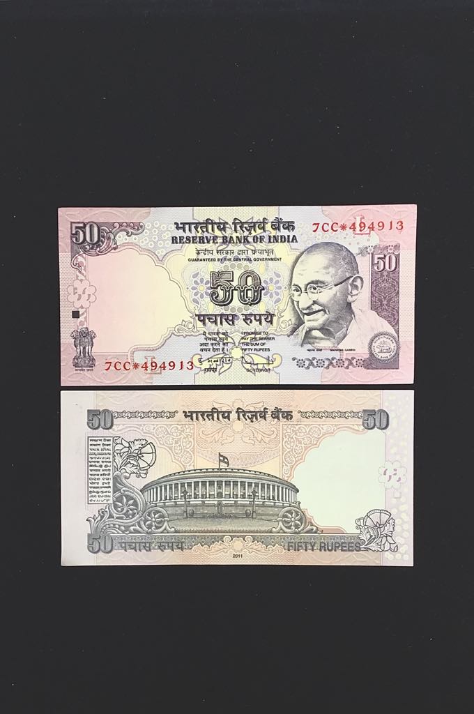FS 17 Rs 50 STAR REPLACEMENT Issue Signed by D Subbarao Inset L PREFIX 7CC Year 2011 Issue Gem Unc