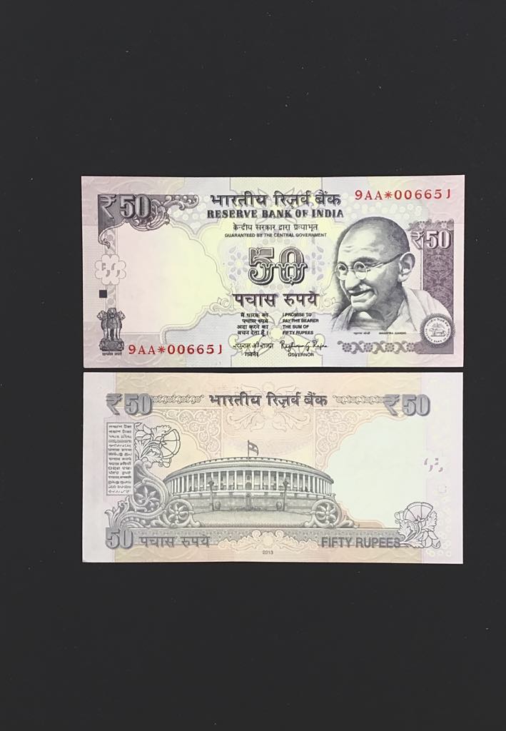 FS 32 Rs 50 STAR REPLACEMENT Issue Signed by Raghuram Rajan Inset PLAIN Year 2013 Issue PREFIX 9AA Gem Unc Very Unique and Rare