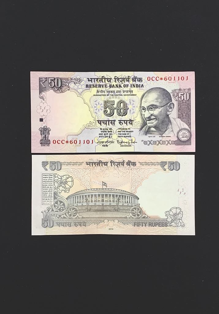 FS 34 Rs 50 STAR REPLACEMENT Issue Signed by Raghuram Rajan Inset L Year 2014 Issue PREFIX 0CC Gem Unc