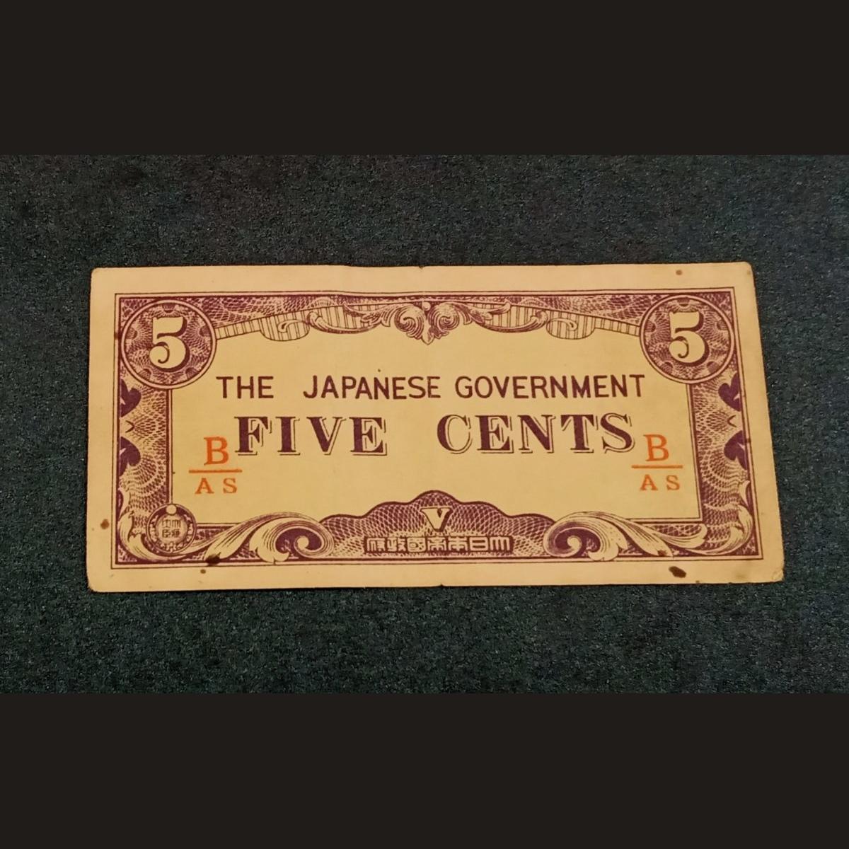 JAPANESE Very Old Issue FIVE CENTS Small Size Bank Note RARE Collectable Grade.