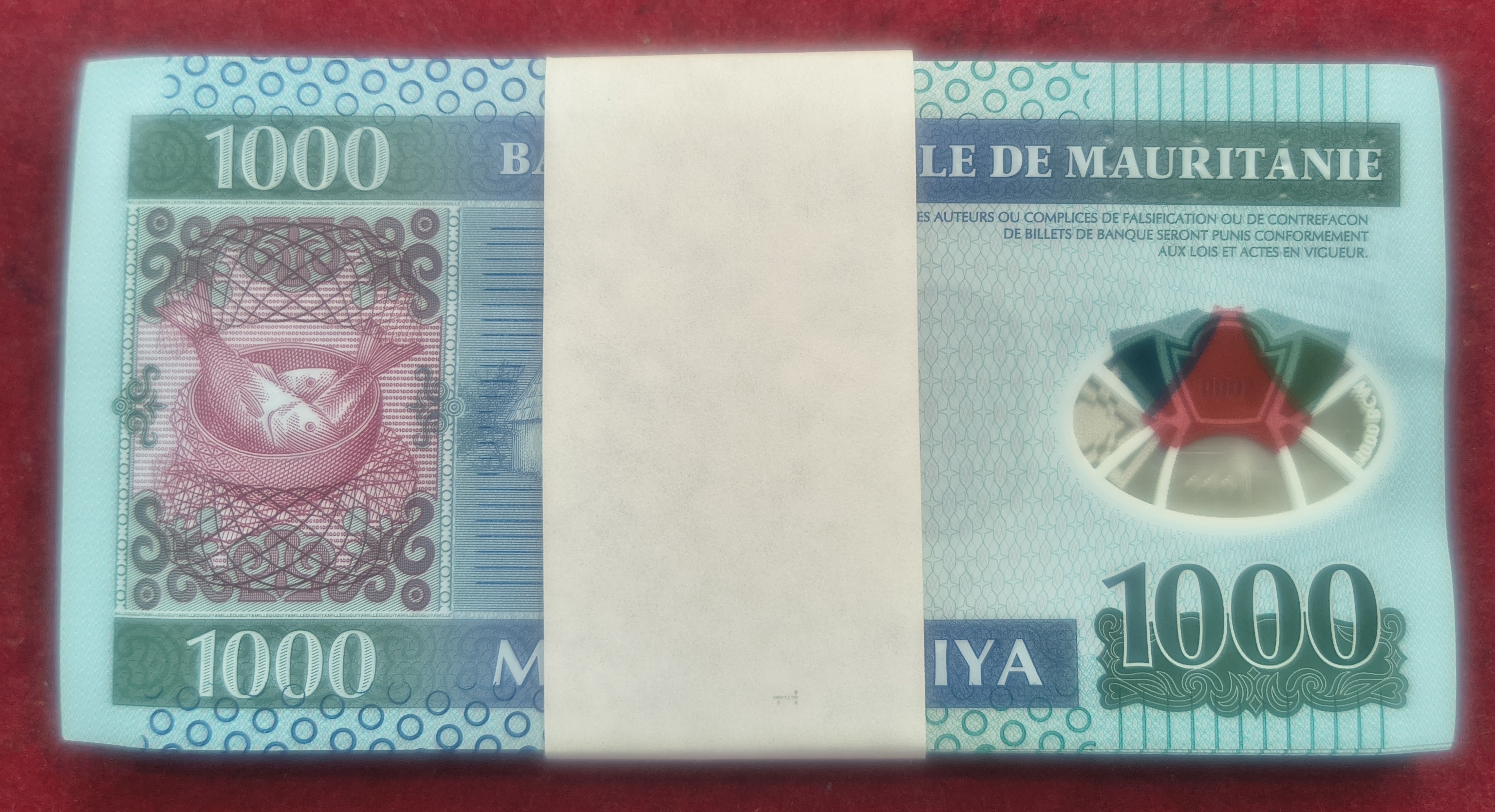 Mauritania 1000 Ouguiya GEM UNC Polymer Non- Serial (100 Note) Packet with Fancy Number Ending 786