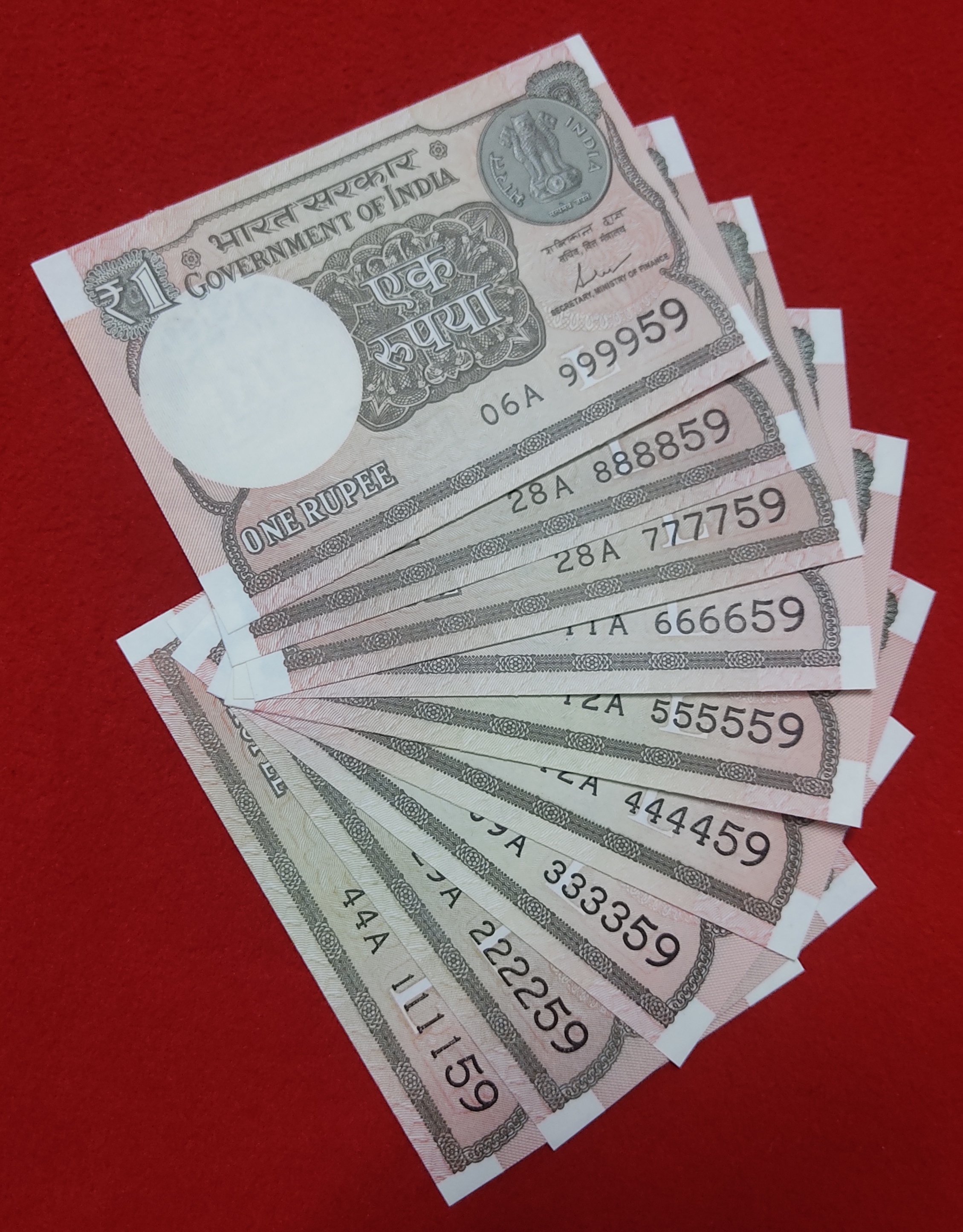 ONE RUPEE FANCY NUMBER SET GEM UNC CONDITION