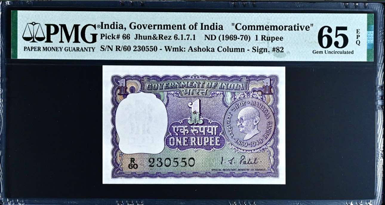 Re 1 India Banknote Graded Commemorative Issue Signed By I G Patel PMG Graded 65 Unique and Rare
