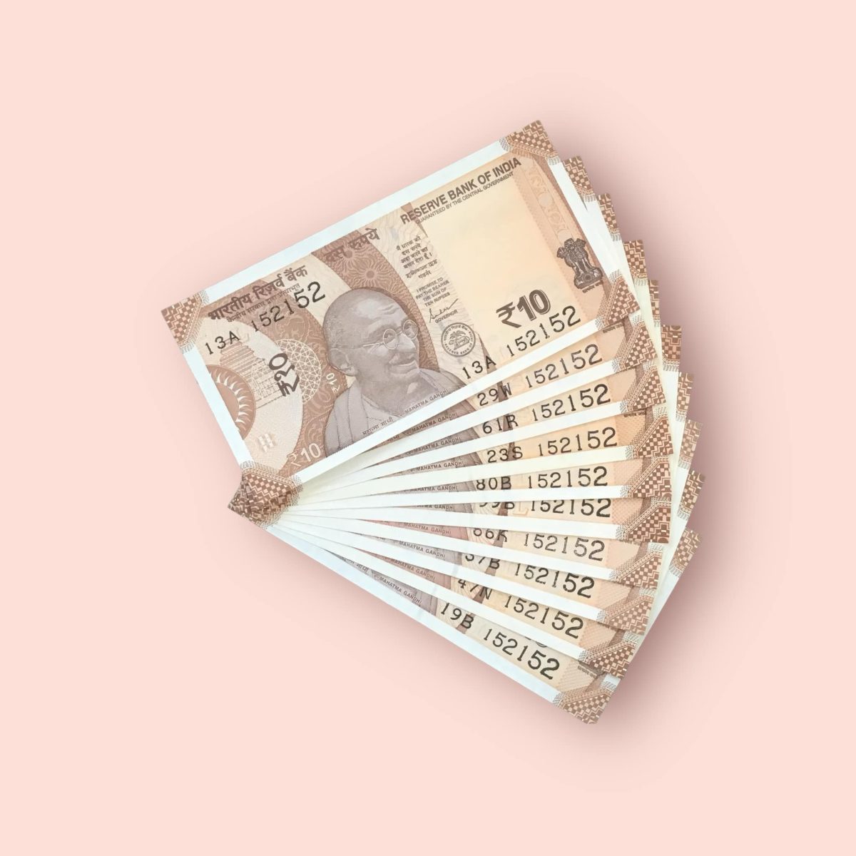 RS 10/- INDIA BANK NOTE SEMI FANCY 10 NOTE SAME NUMBER SET 152152 UNIQUE AND RARE