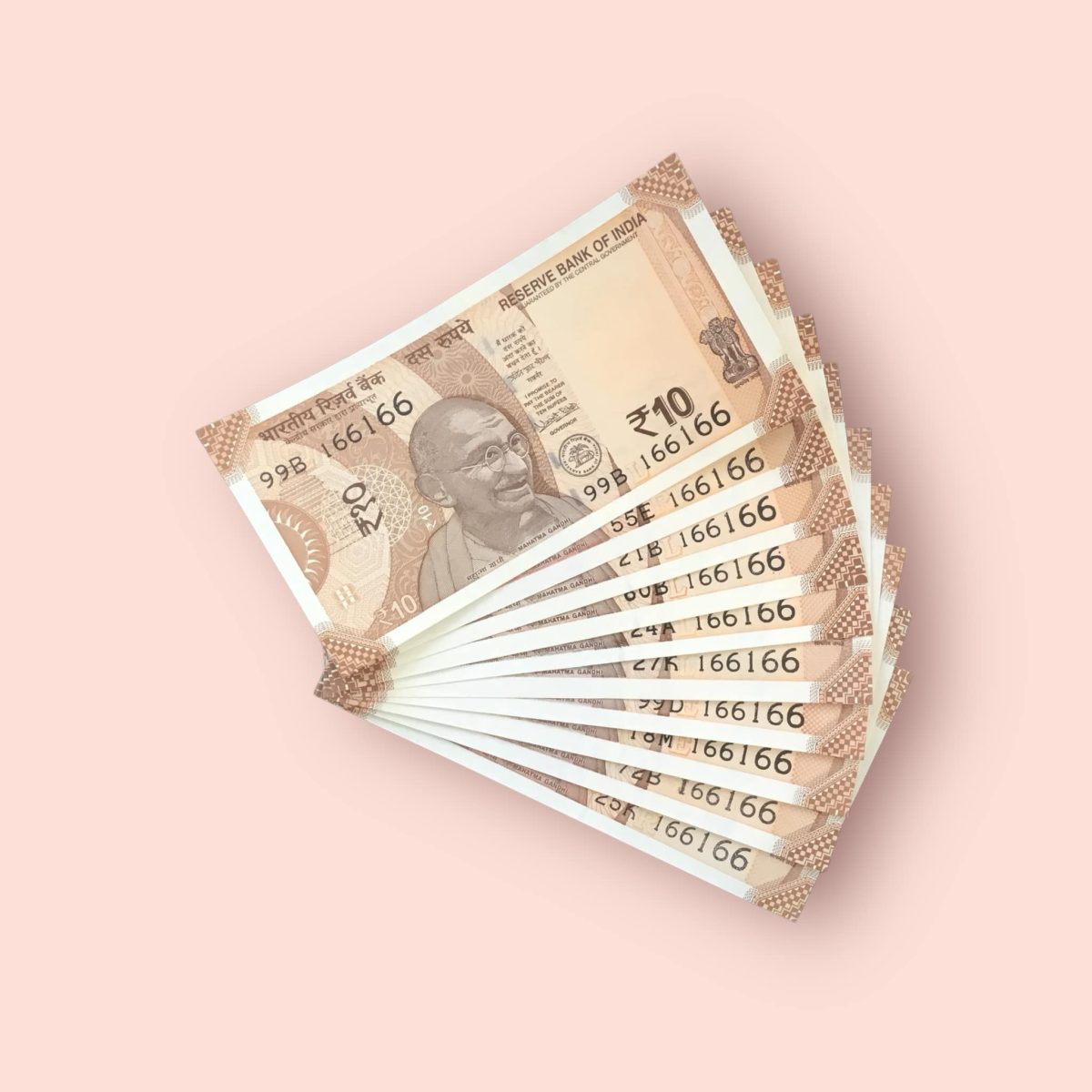 RS 10/- INDIA BANK NOTE SEMI FANCY 10 NOTE SAME NUMBER SET 166166 UNIQUE AND RARE