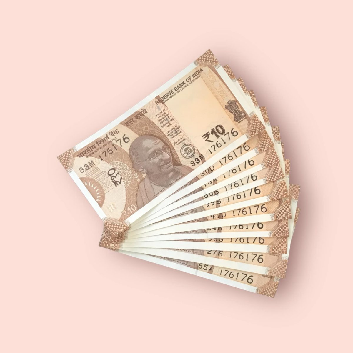 RS 10/- INDIA BANK NOTE SEMI FANCY 10 NOTE SAME NUMBER SET 176176 UNIQUE AND RARE