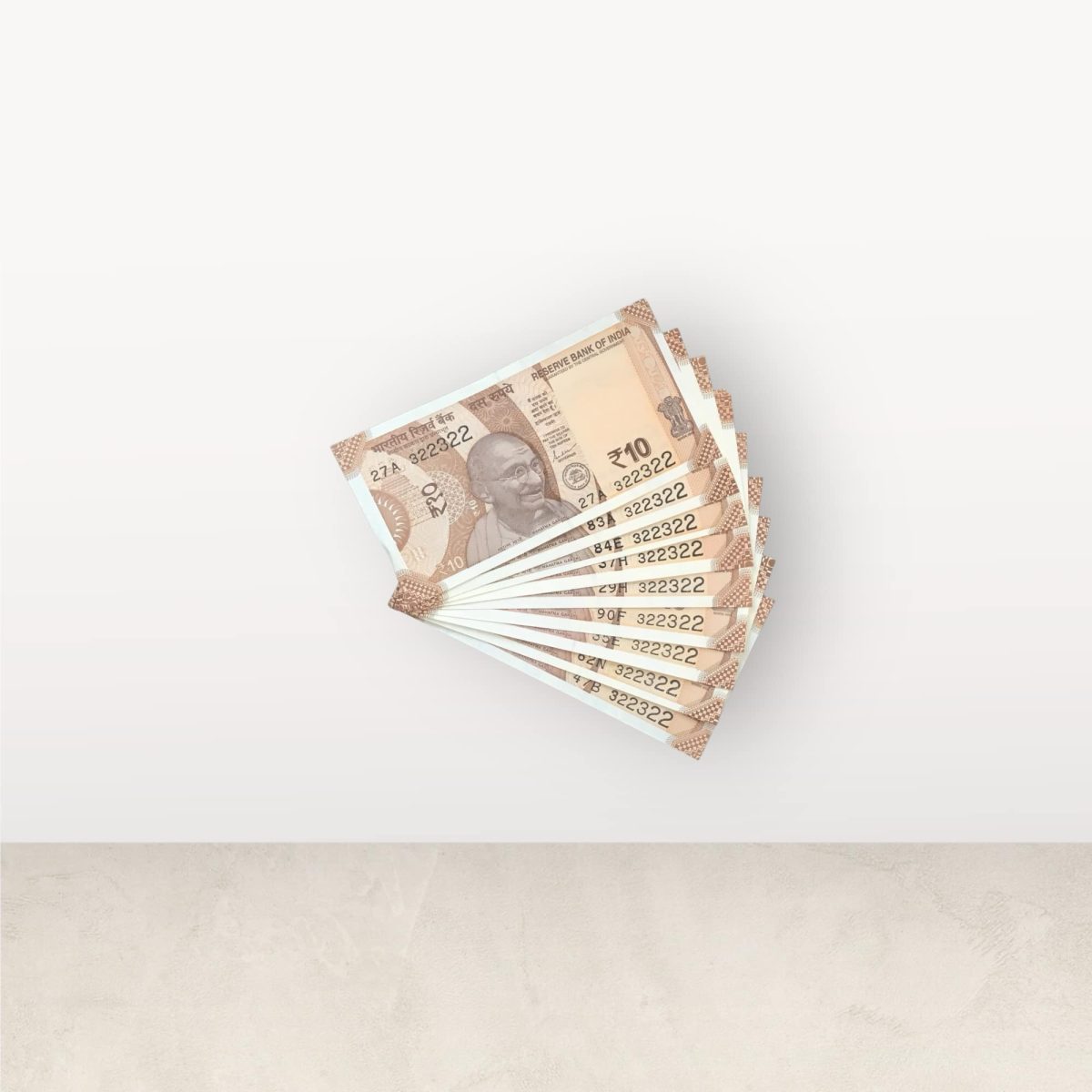 RS 10/- INDIA BANK NOTE SEMI FANCY 10 NOTE SAME NUMBER SET 322322 UNIQUE AND RARE