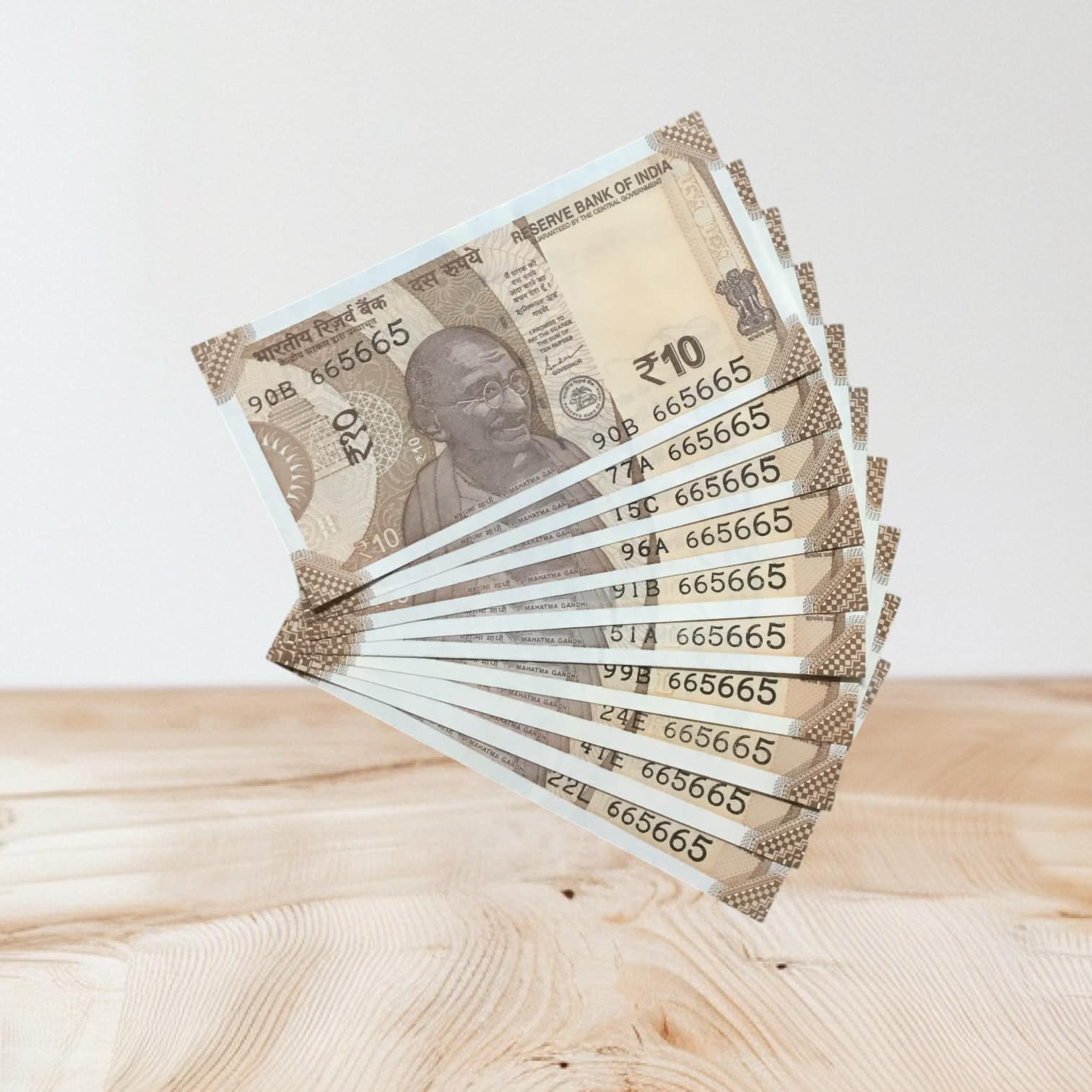 RS 10/- INDIA BANK NOTE SEMI FANCY 10 NOTE SAME NUMBER SET 665665 UNIQUE AND RARE