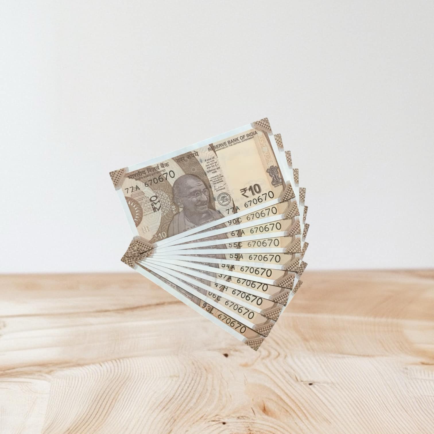 RS 10/- INDIA BANK NOTE SEMI FANCY 10 NOTE SAME NUMBER SET 670670 UNIQUE AND RARE