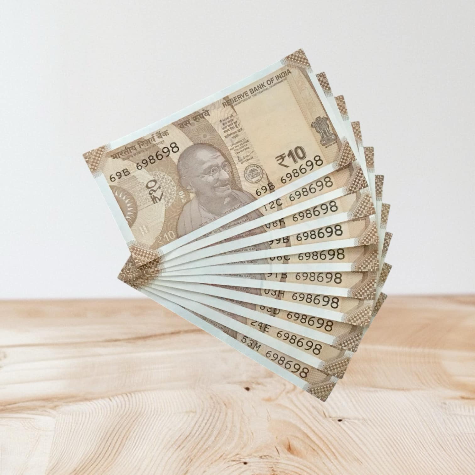 RS 10/- INDIA BANK NOTE SEMI FANCY 10 NOTE SAME NUMBER SET 698698 UNIQUE AND RARE