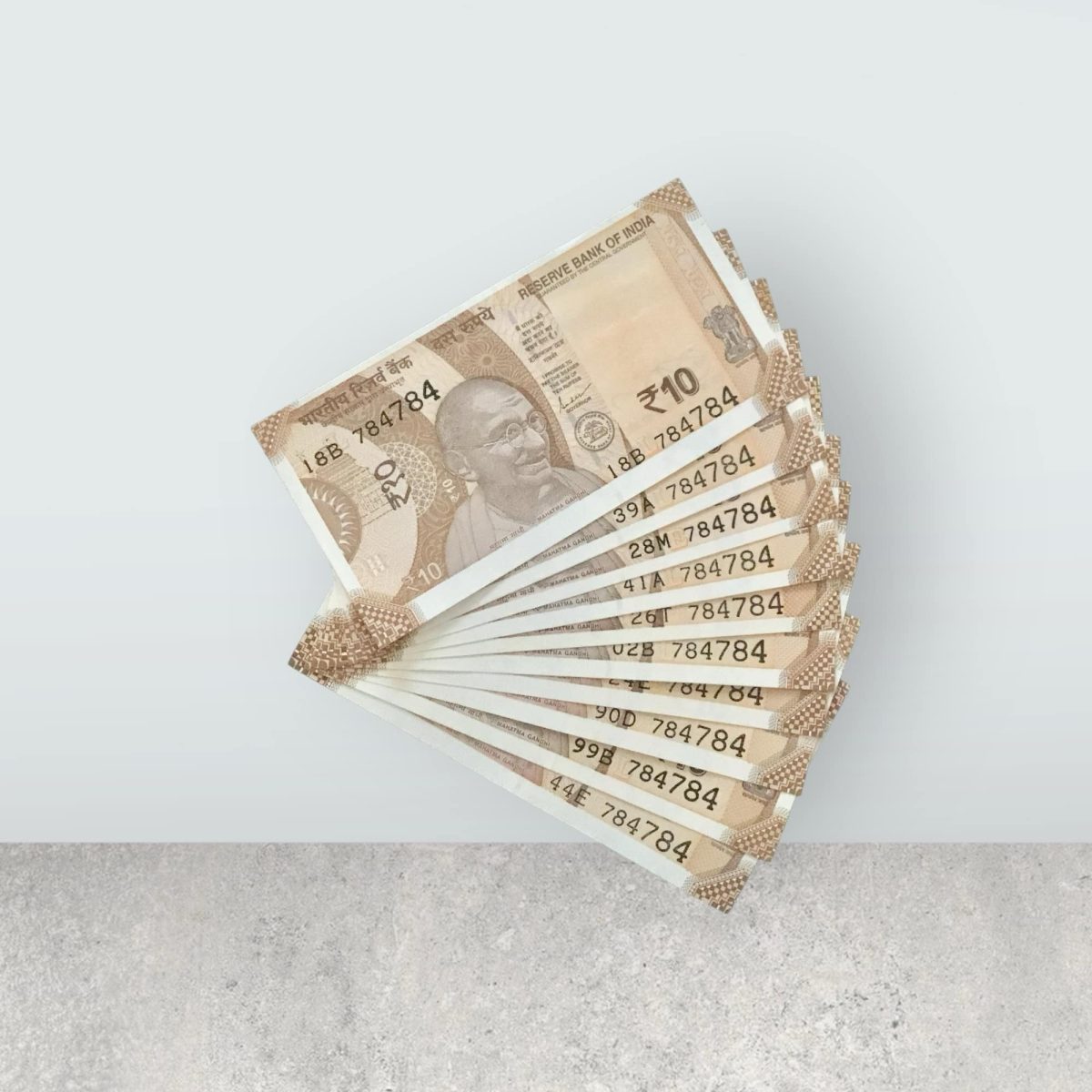 Step into the world of numismatics with this remarkable RS 10/- India banknote semi fancy set of 10 notes, all bearing the same unique serial number 784784. Issued by the Reserve Bank of India, these notes are not just pieces of currency but also windows to India’s economic history. Dating back to a time when banknotes were crafted with intricate details, this set stands out for its rare and captivating design.
