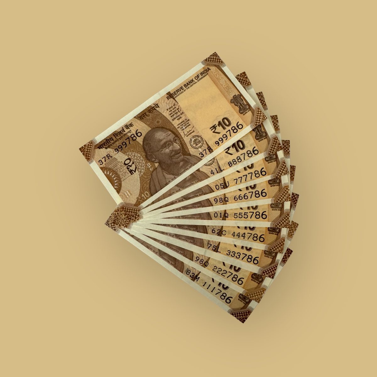Rs 10/- India Banknote Holy Solid Number 111786-999786 Gem Unc Unique and Rare