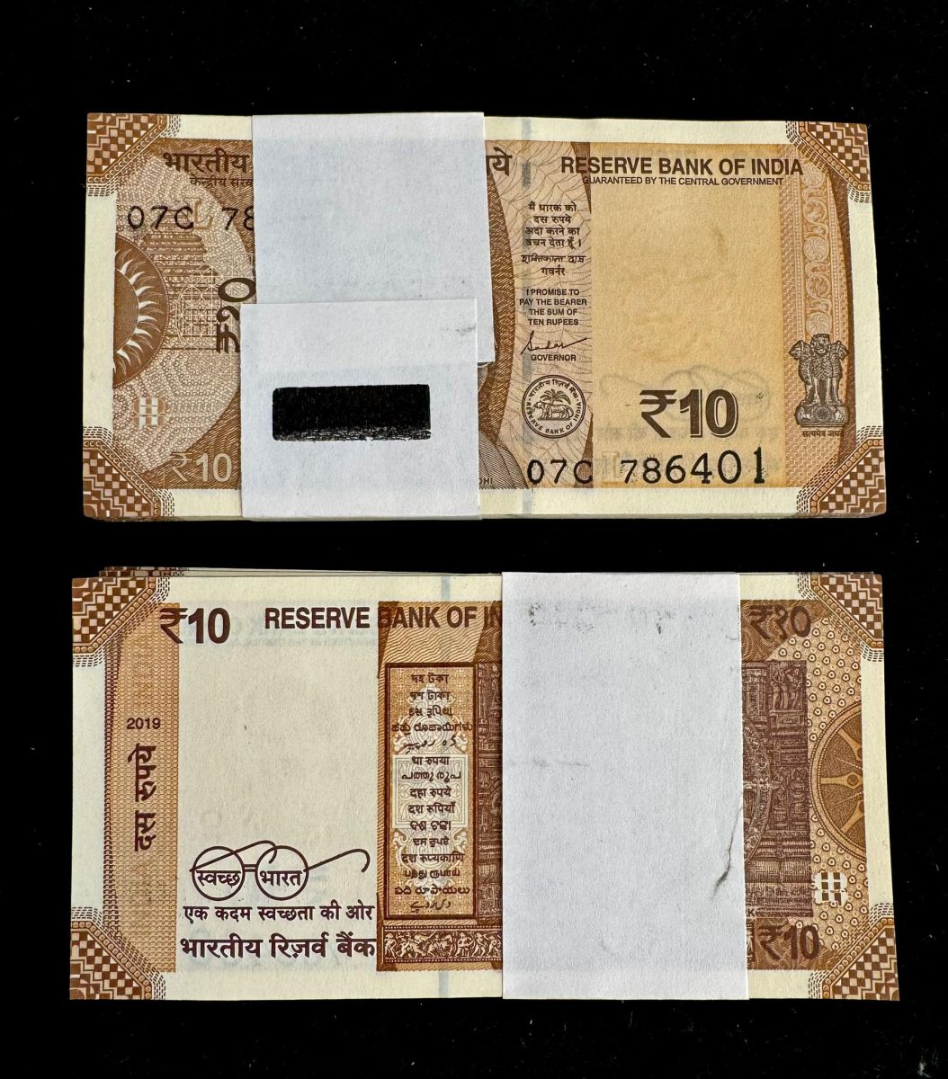 Rs 10/- INDIA BANKNOTE Serial Bundle 786401 to 786500 Gem Unc Unique and Rare L Inset 2019