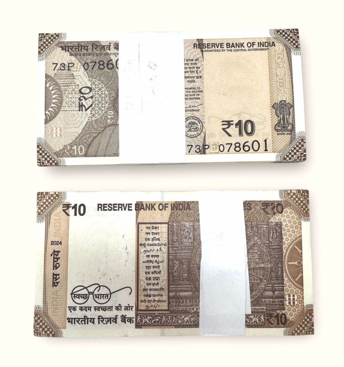 Rs 10 INDIA BANKNOTE Serial Bundle Inset E Year 2024 GEM UNC Unique and Rare 078601 to 078700