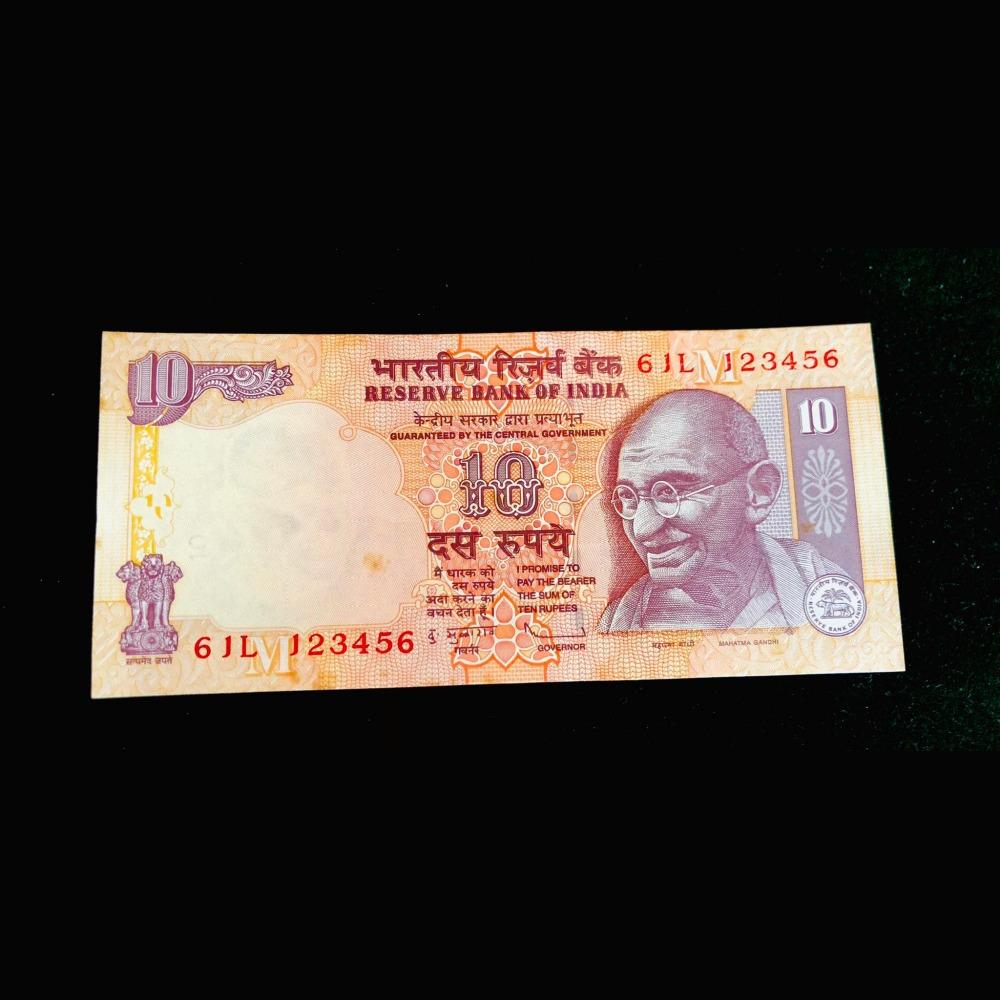 Rs 10 India Banknote Solid Fancy Ladder 123456 Small Font Issue