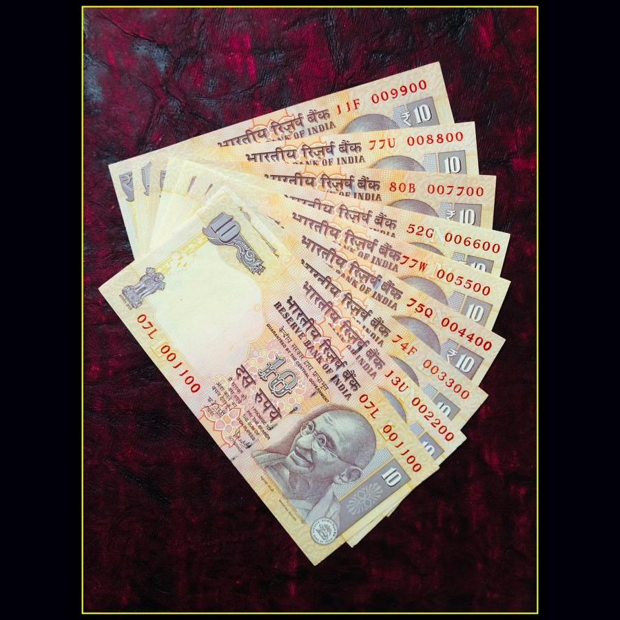 Rs 10 Previous Issue Solid Numbers 001100 to 009900 GEM UNC Set