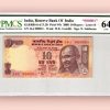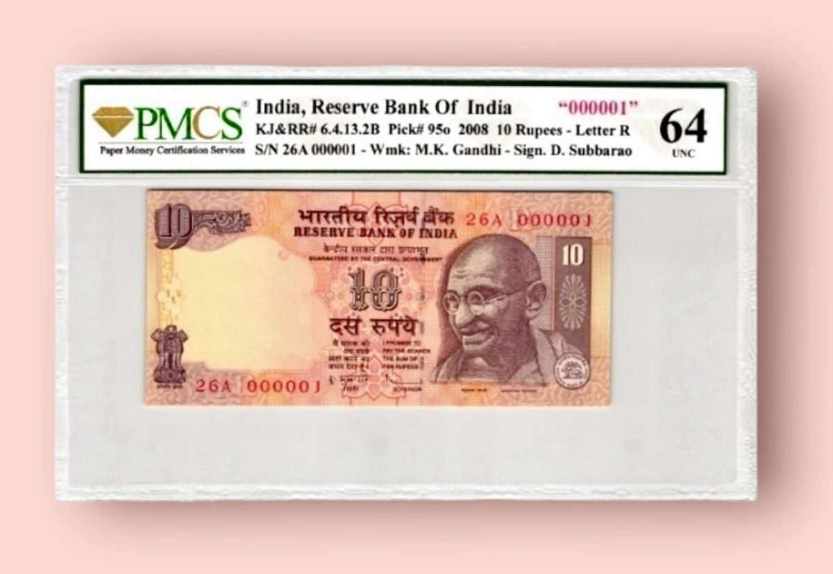 Rs 10 REPUBLIC INDIA BANKNOTE GRADED 64 Inset R signed by D Subbarao LOW SERIAL 000001 UNC Unique and Rare
