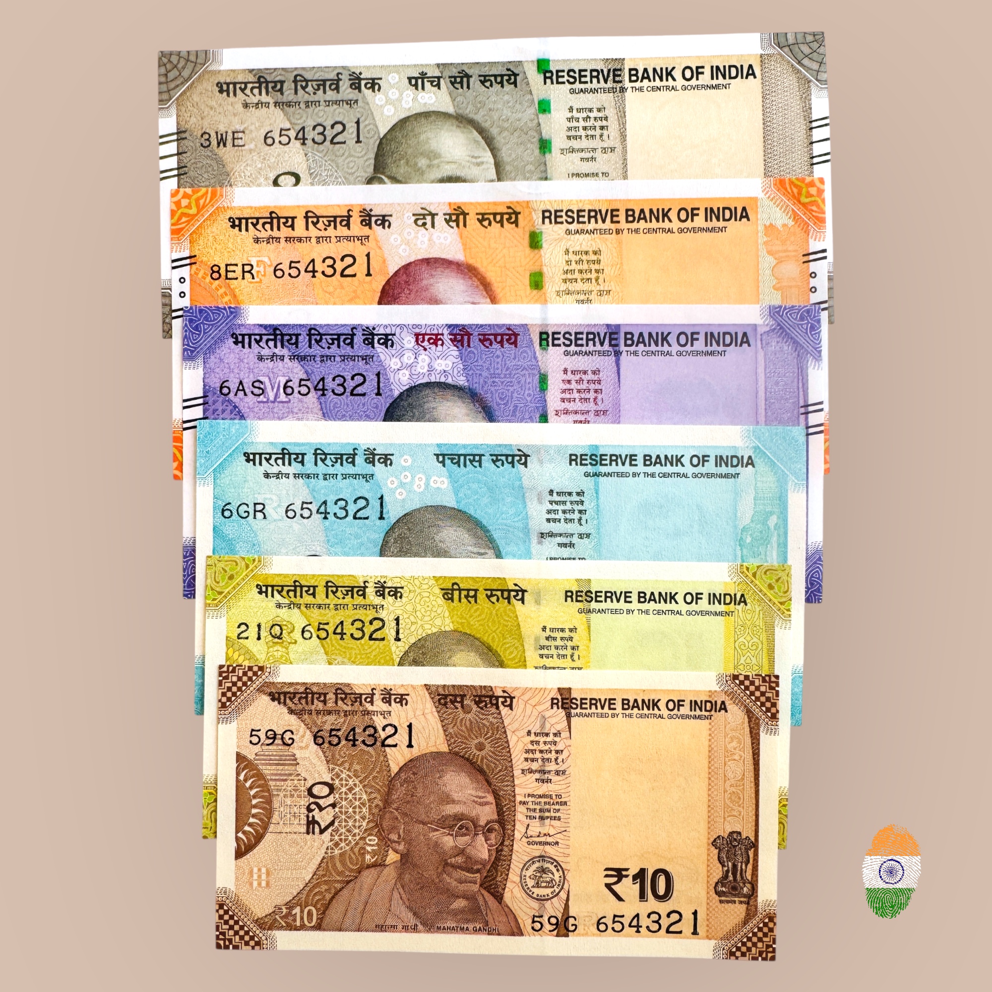 Rs 10 to 500 Fancy Number Set 654321 GEM UNC Complete Set