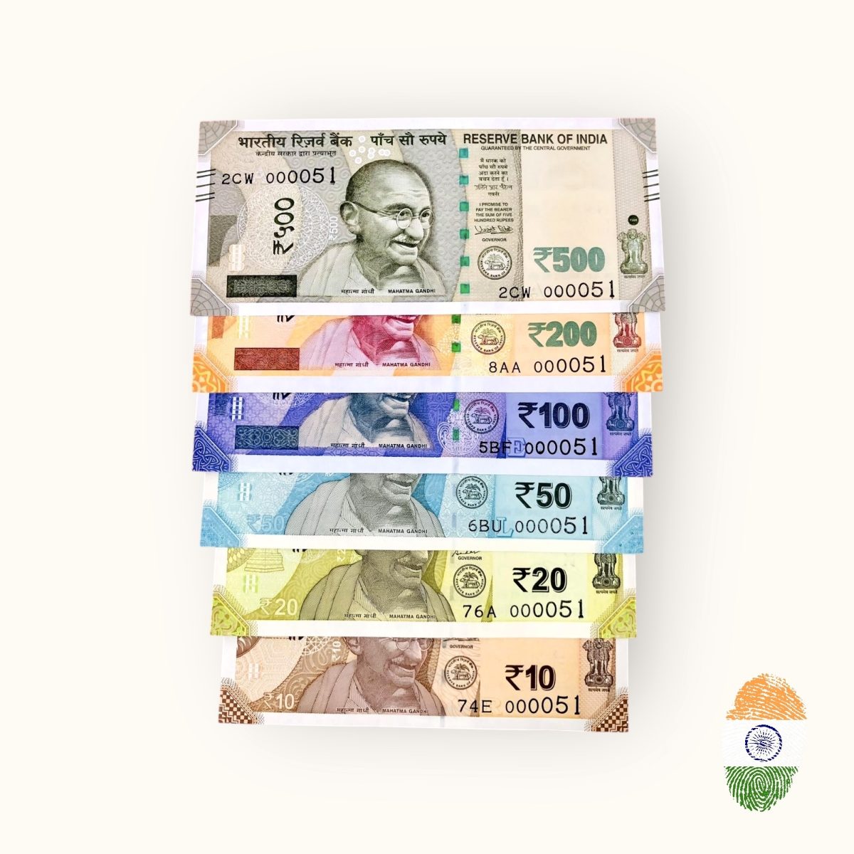 Rs 10 to 500 India Banknote Solid Fancy Set 000051 Gem Unc Unique Collection Rare