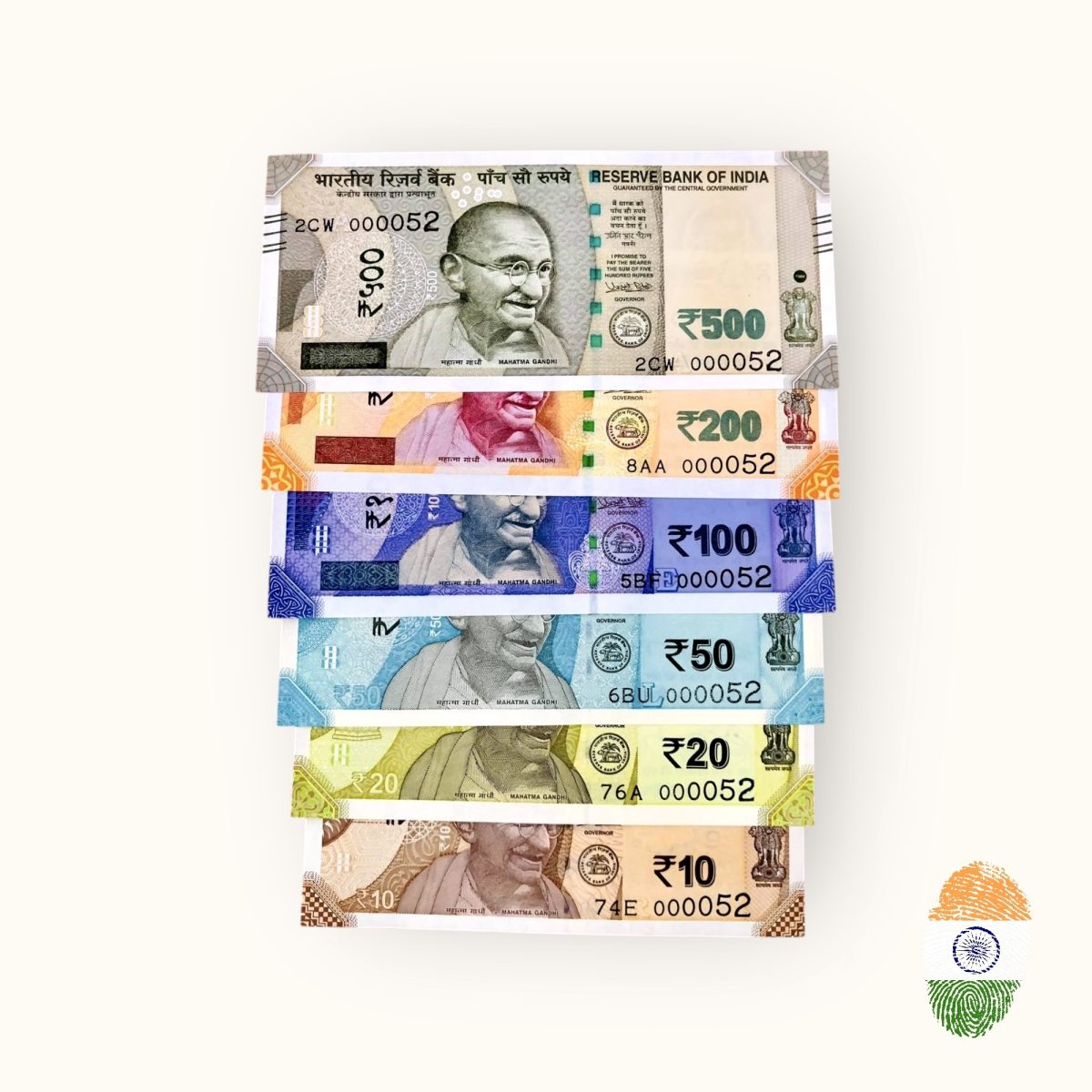 Rs 10 to 500 India Banknote Solid Fancy Set 000052 Gem Unc Unique Collection Rare