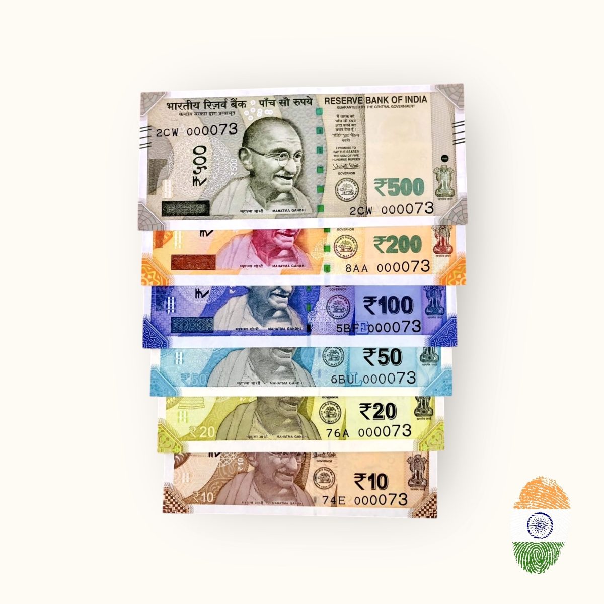 Rs 10 to 500 India Banknote Solid Fancy Set 000073 Gem Unc Unique Collection Rare