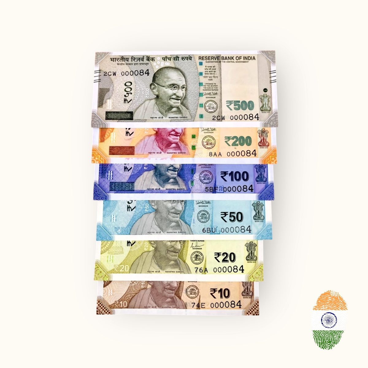 Rs 10 to 500 India Banknote Solid Fancy Set 000084 Gem Unc Unique Collection Rare
