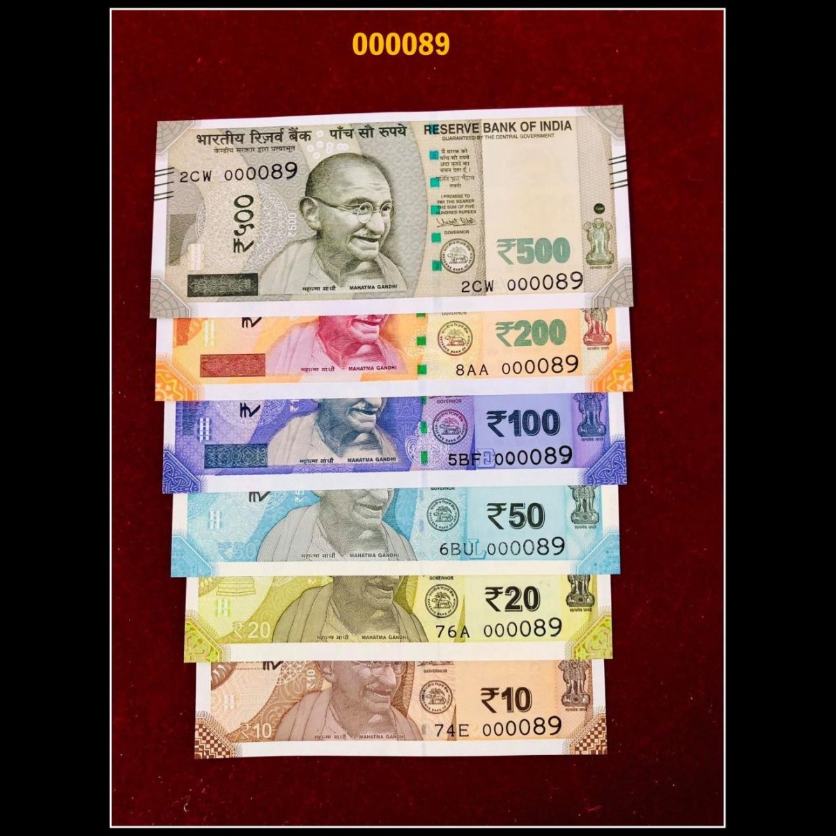 Rs 10 to 500 India Banknote Solid Fancy Set 000089 Gem Unc Unique Collection Rare