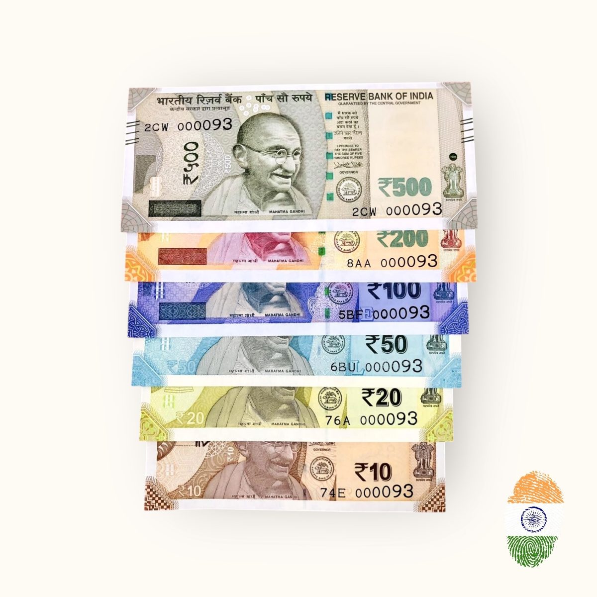 Rs 10 to 500 India Banknote Solid Fancy Set 000093 Gem Unc Unique Collection Rare