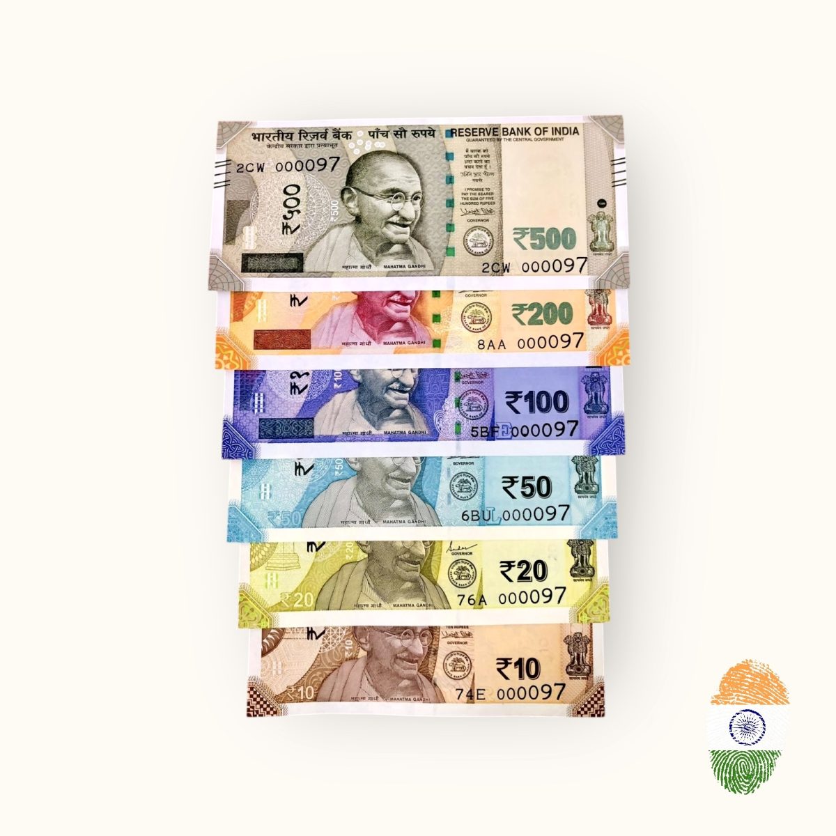 Rs 10 to 500 India Banknote Solid Fancy Set 000097 Gem Unc Unique Collection Rare