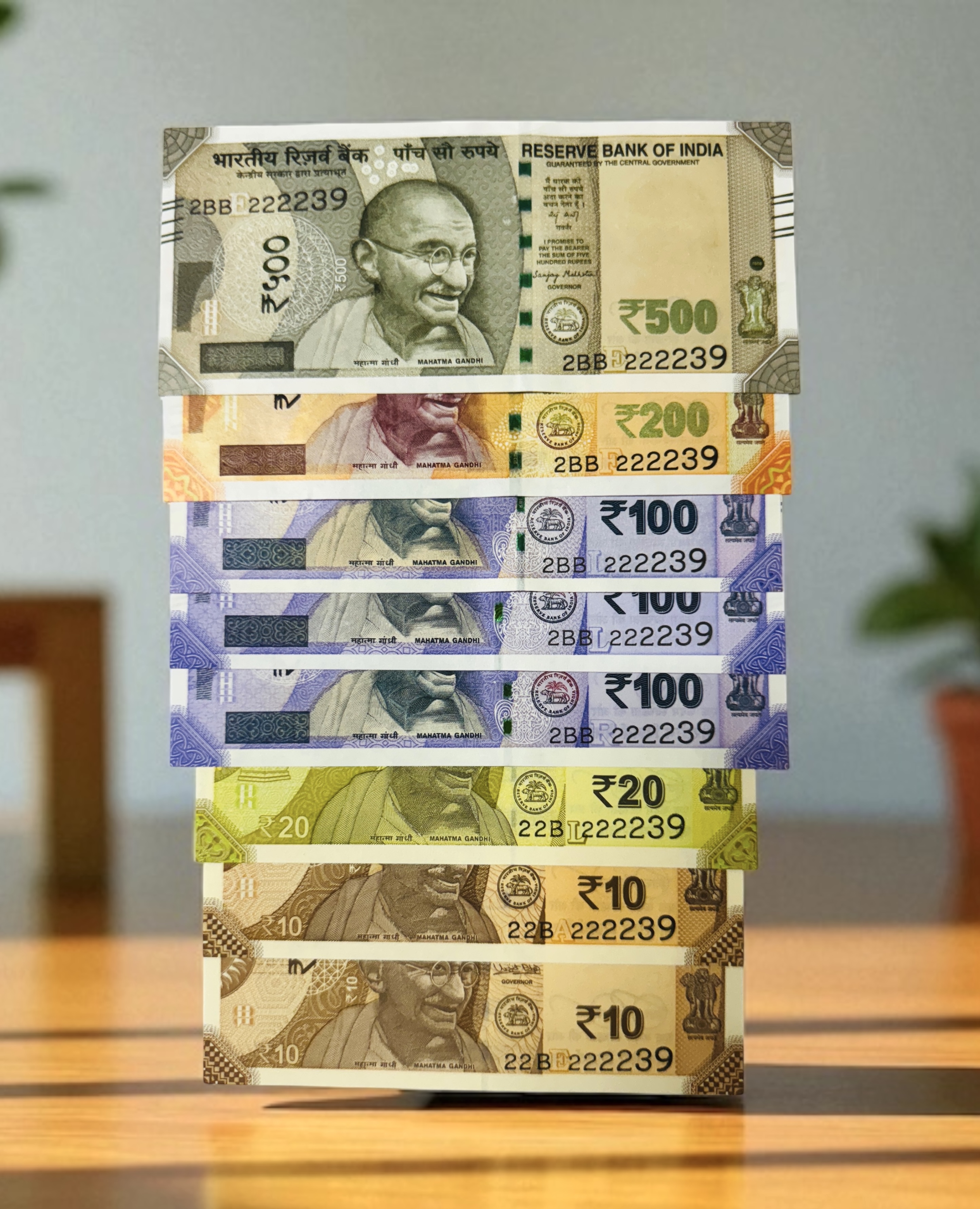 Rs 10 to 500 India Banknote Super Solid Fancy Number Octagon Set 2BB GEM UNC Unique and Rare