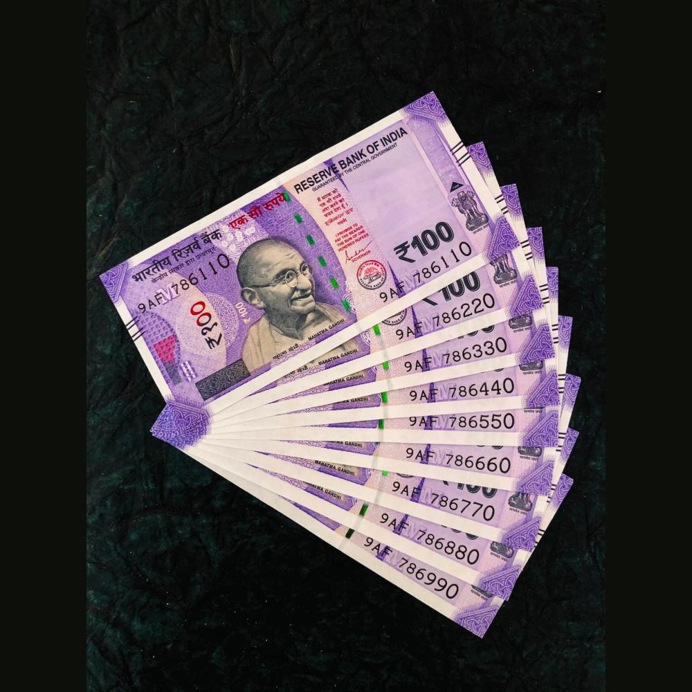 🏷️ Rare Rs 100 banknote set with serial numbers 786110 to 786990