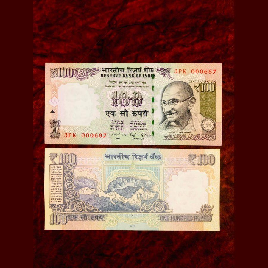 🏷️ Rare Rs 100 India Banknote with Fancy Number 000687 and Holy Number Mirror 786