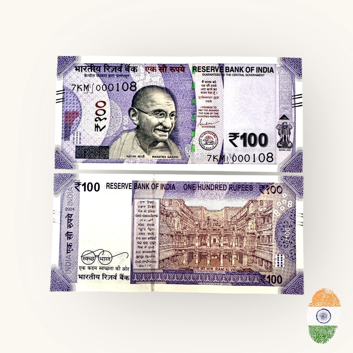 Rs 100 India Banknote Low Serial Number 000108 Issue Gem Unc Unique and Rare
