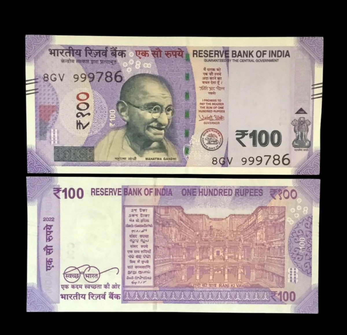 Rs 100 India Banknote Holy Serial Number 999786 Gem Unc Very Unique and Rare