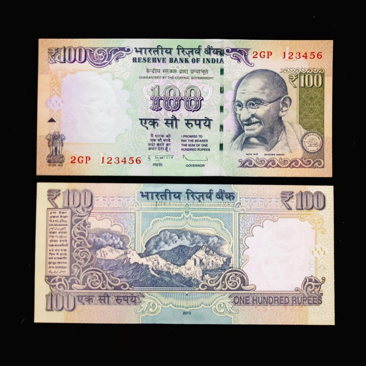 Rs 100 India Banknote Small Solid Fancy Ladder 123456 New Issue