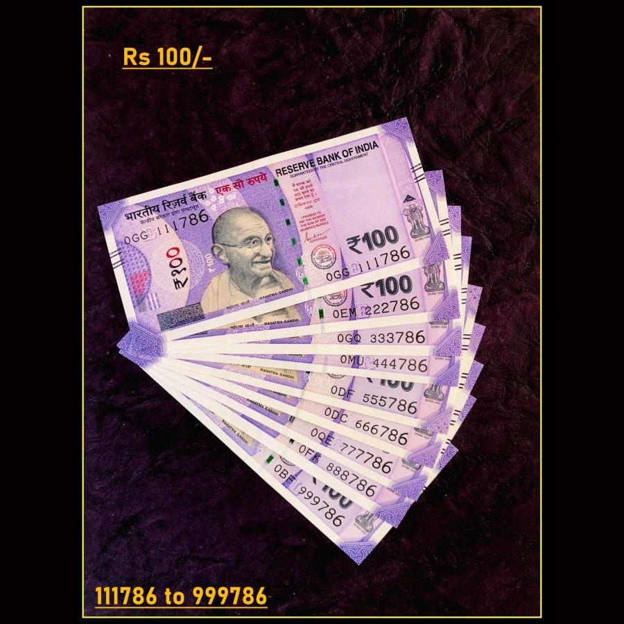 Rs 100 India Banknote Solid Fancy Number 111786 to 999786 GEM UNC UNIQUE COLLECTION SET