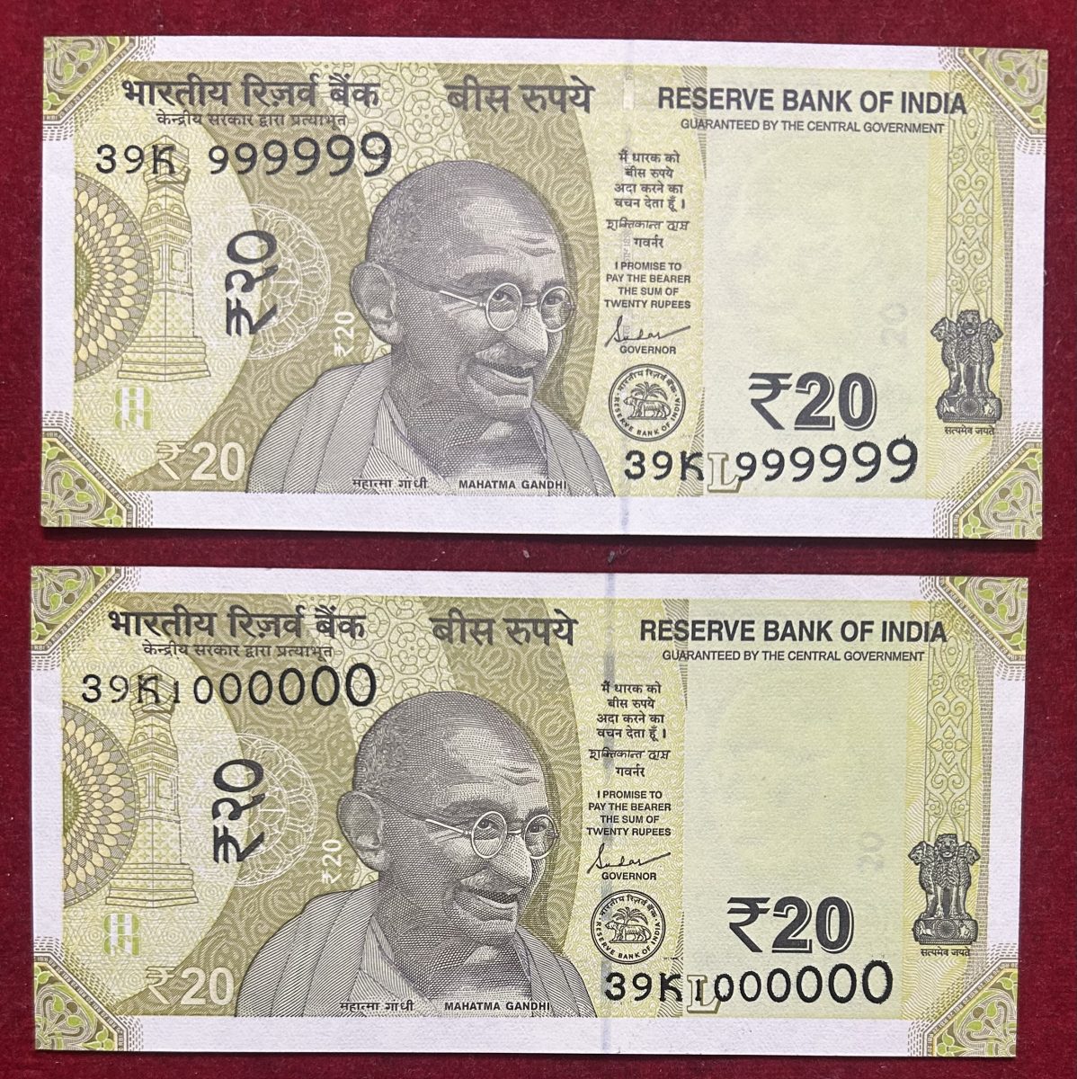 Rs 20 Fancy Number Set 999999 AND 1000000 Gem Unc Rare and Unique