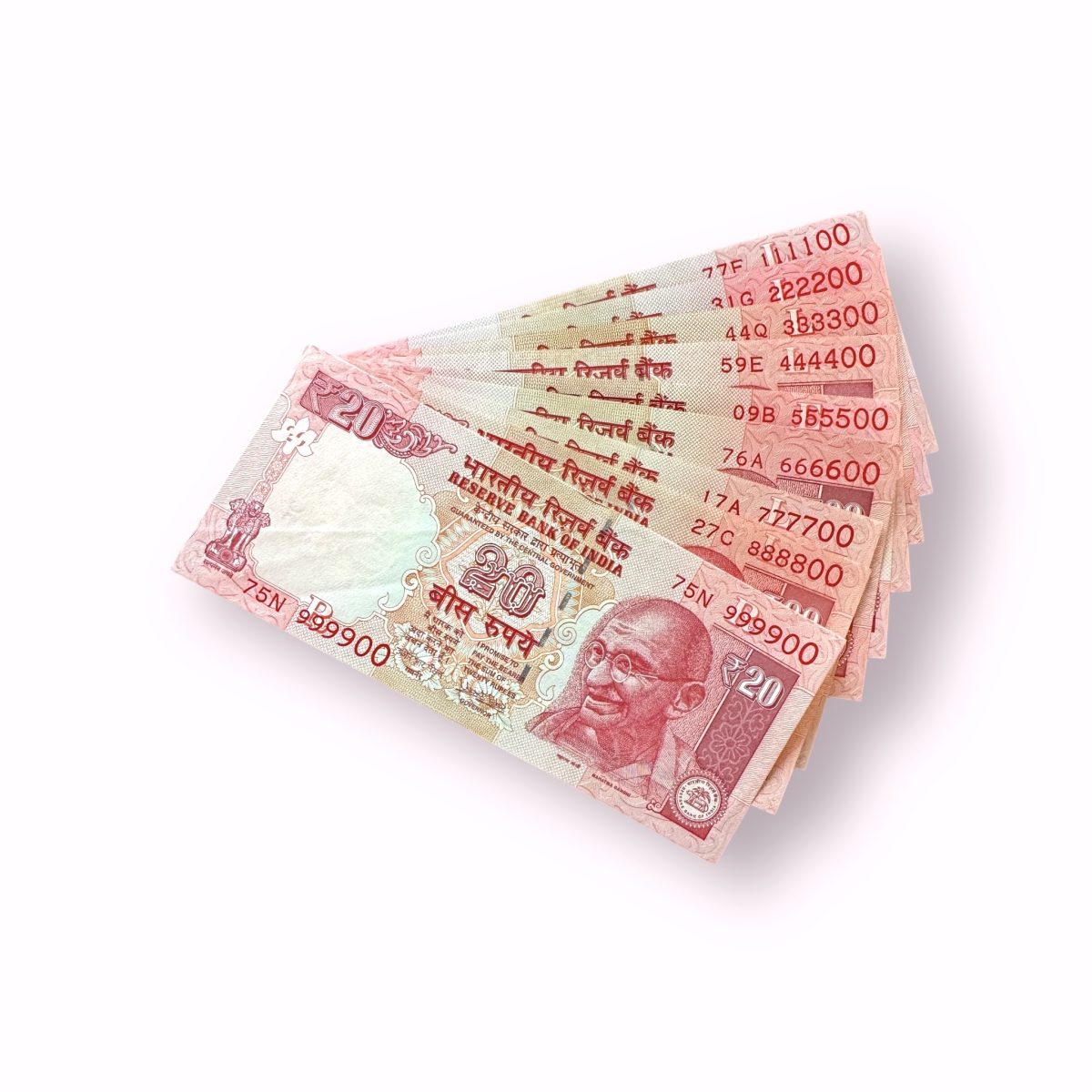 Rs 20 India Banknote 9 note set fancy numbers starting 111100 till 999900 Unique and Rare