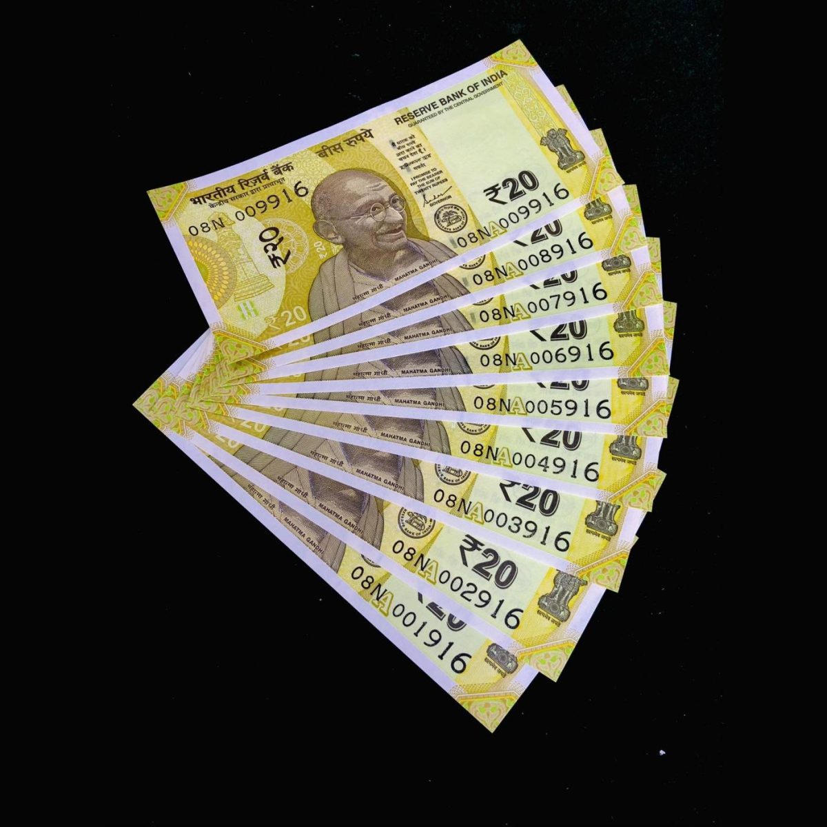 Rs 20 India Banknote Fancy Number 001916 to 009916 Gem UNC Set Same Prefix Unique