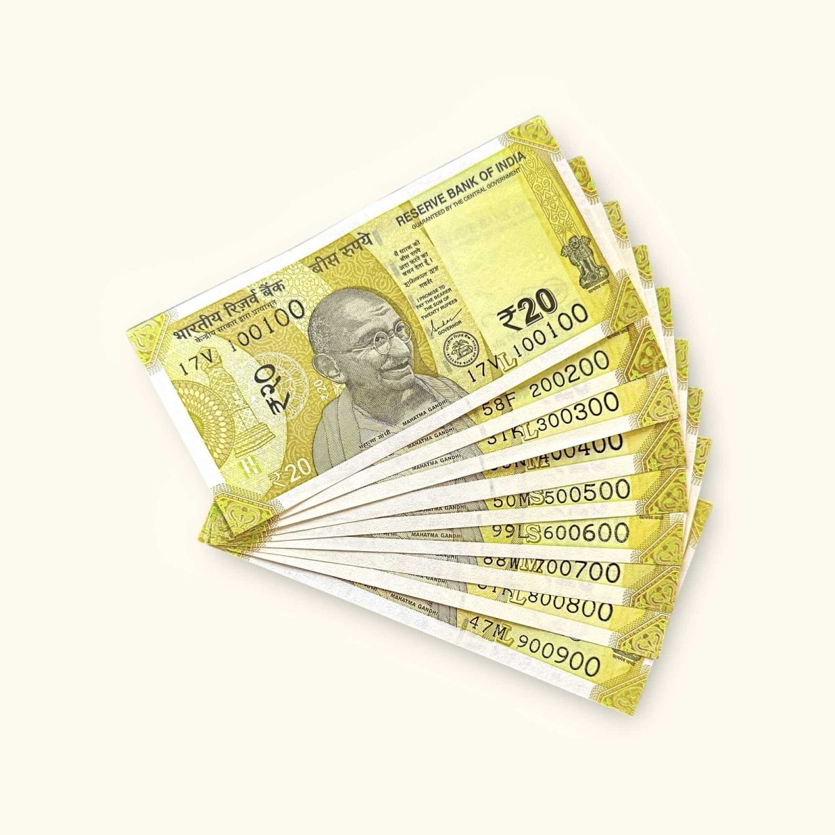 Delve into the fascinating world of numismatics with this exquisite collectible set of Rs 20 India banknotes with fancy numbers ranging from 100100 to 900900. Issued by the Reserve Bank of India, these gem uncirculated banknotes are a testament to the country’s rich economic history. The set is a rare find, showcasing unique serial numbers that make each note distinct and highly sought after by collectors worldwide.