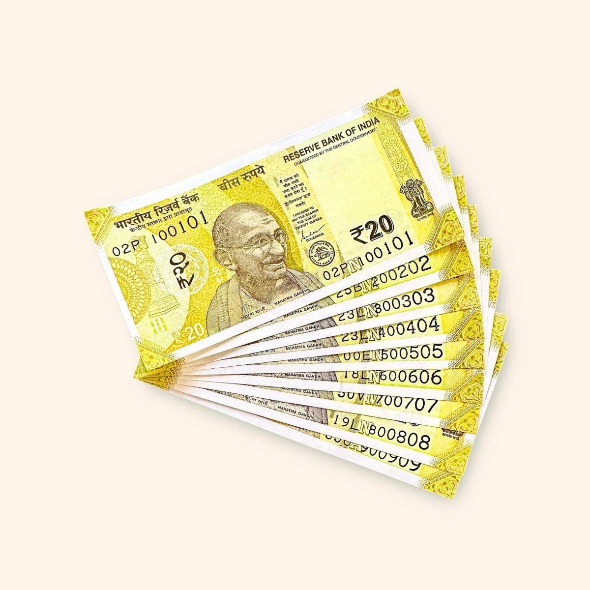 Rs 20 India Banknote Fancy Number Set 100101 till 900909 Gem Unc Very Unique and Rare