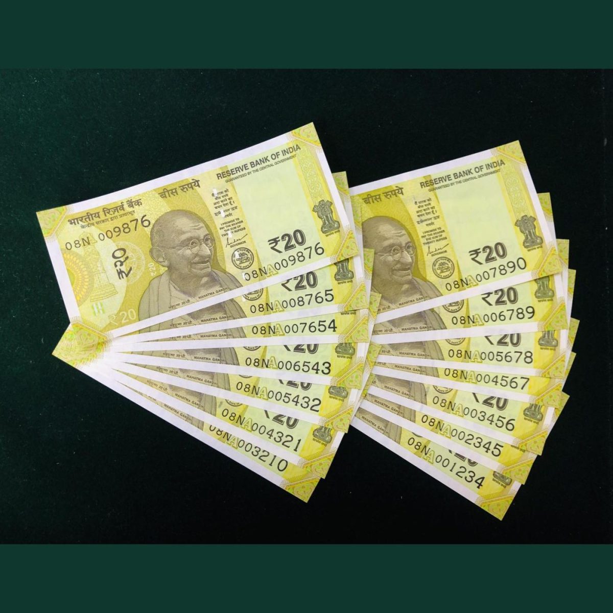 Rs 20 India Banknote Fancy Set 001234 to 003210 GEM UNC Unique Latest Issue