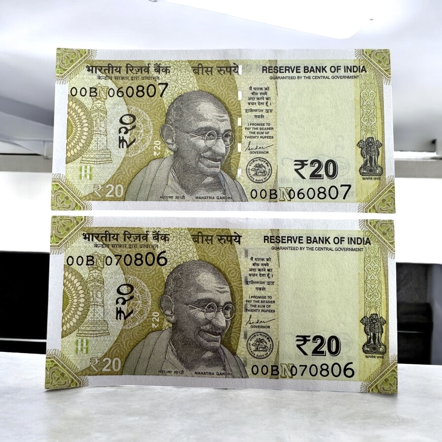 Rs 20 India Banknote Holy Serial Number 070806 and 060807 Issue Gem Unc Unique and Rare