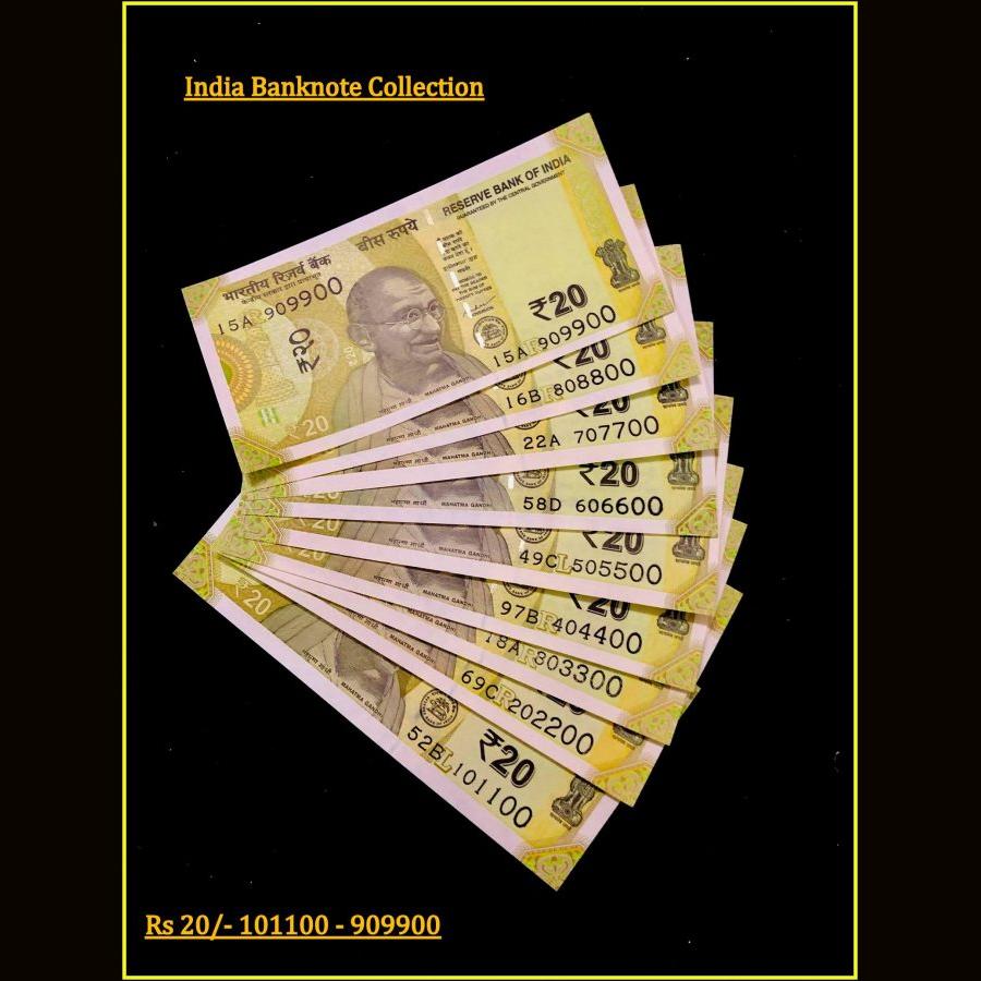 Rs 20 INDIA BANKNOTE SET 101100 – 909900 GEM UNC UNIQUE